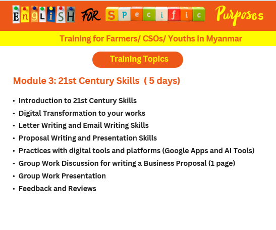 စိုက်ပျိုးရေးနှင့် မွေးမြူရေးလုပ်ငန်းဆိုင်ရာ လုပ်ငန်း အဆိုပြုလွှာများ အင်္ဂလိပ်လို ရေးသားလာနိုင်စေရန်